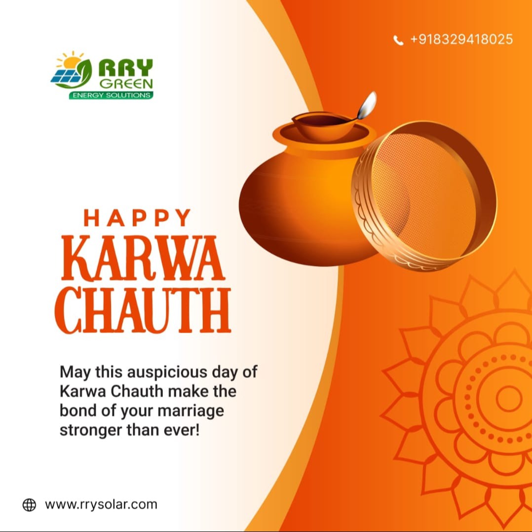 Celebrate the divine festival of Karwa Chauth with heartfelt wishes from RRY Green Energy Solutions. May this auspicious occasion strengthen the sacred bond of love and togetherness in your marriage. 🌸